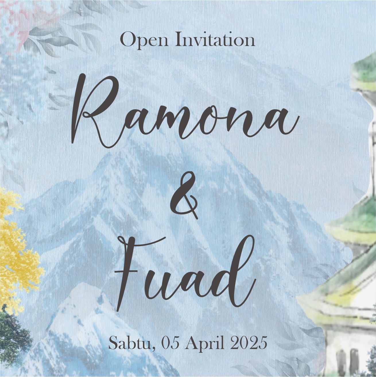 The Wedding Of Faizal & Adel Siantar | Sabtu, 19 April 2025 Janji Suci ” Dan di antara tanda-tanda (kebesaran)-Nya ialah Dia menciptakan pasangan-pasangan untukmu dari jenismu sendiri, agar kamu cenderung dan merasa tenteram kepada nya, dan Dia menjadikan di antaramu rasa kasih dan sayang. “ – (Qs. Ar- Rum 21 ) – Sang Mempelai Faizal Ahmad Faizal Fazry, S.E Putra dari Bapak M. Surochman, S.S., M.H &Ibu Sulastri, S.Keb., Bd. Instagram Sang Mempelai Adel Read more