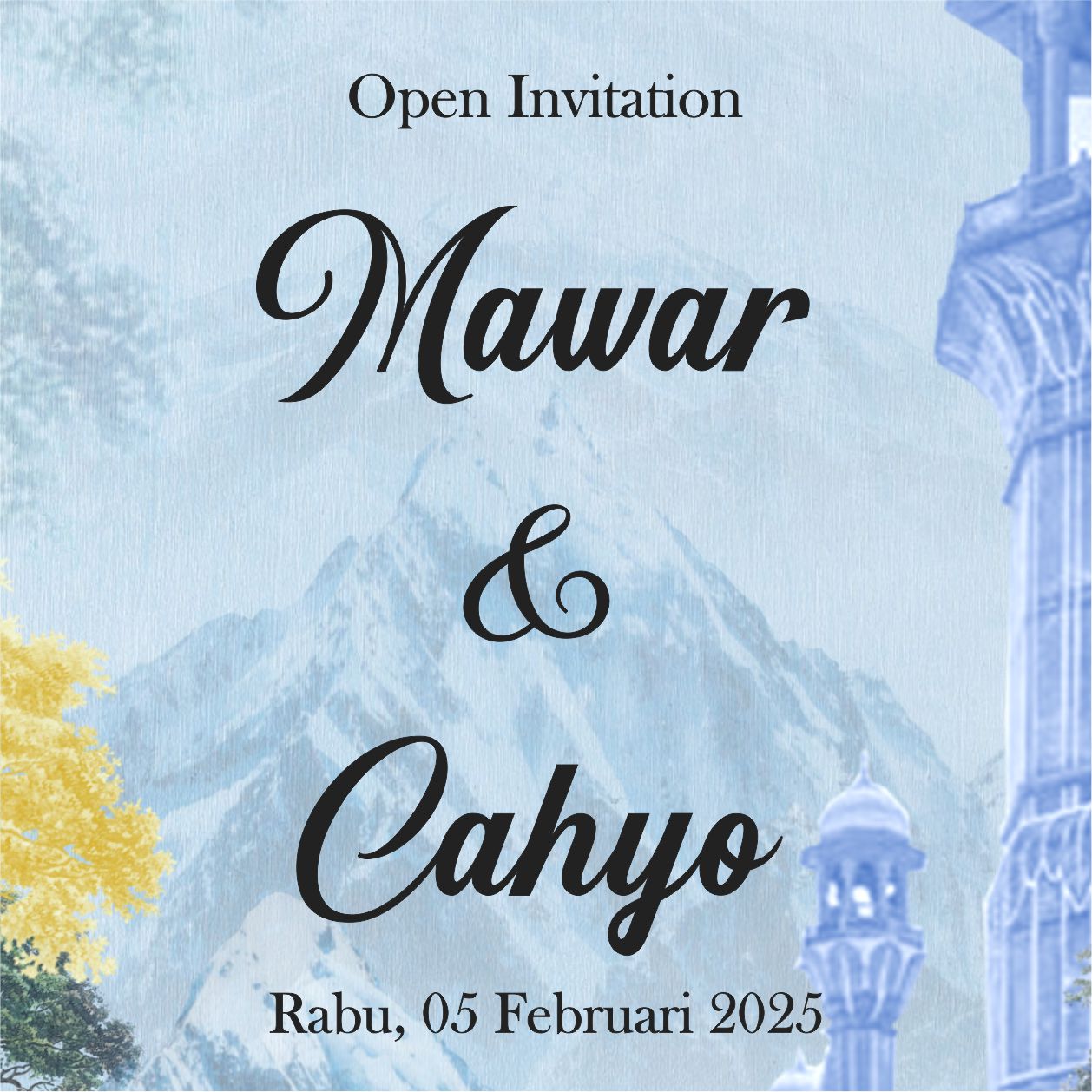 The Wedding Of Mawar & Cahyo Rabu, 05 Februari 2025 Dan di antara tanda-tanda kekuasaan-Nya ialah Dia menciptakan untukmu isteri-isteri dari jenismu sendiri, supaya kamu cenderung dan merasa tenteram kepadanya, dan dijadikan-Nya diantaramu rasa kasih dan sayang. Sesungguhnya pada yang demikian itu benar-benar terdapat tanda-tanda bagi kaum yang berfikir. Ar-Rum Ayat 21 Assalamualaikum Warahmatullahi Wabarakatuh Segala Puji Bagi Allah yang telah menjadikan hambanya hidup berpasang-pasangan. Dengan memohon Ridho, Rahmat, dan Berkah Allah, Kami bermaksud untuk Read more